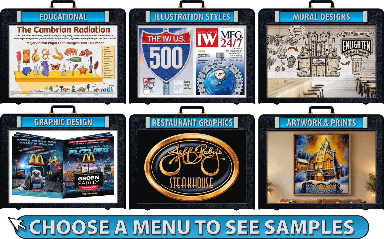 I’m Rob Schuster, an artist in Cincinnati, Ohio. I specialize in educational graphics, illustration, murals, fine art and graphic design.
